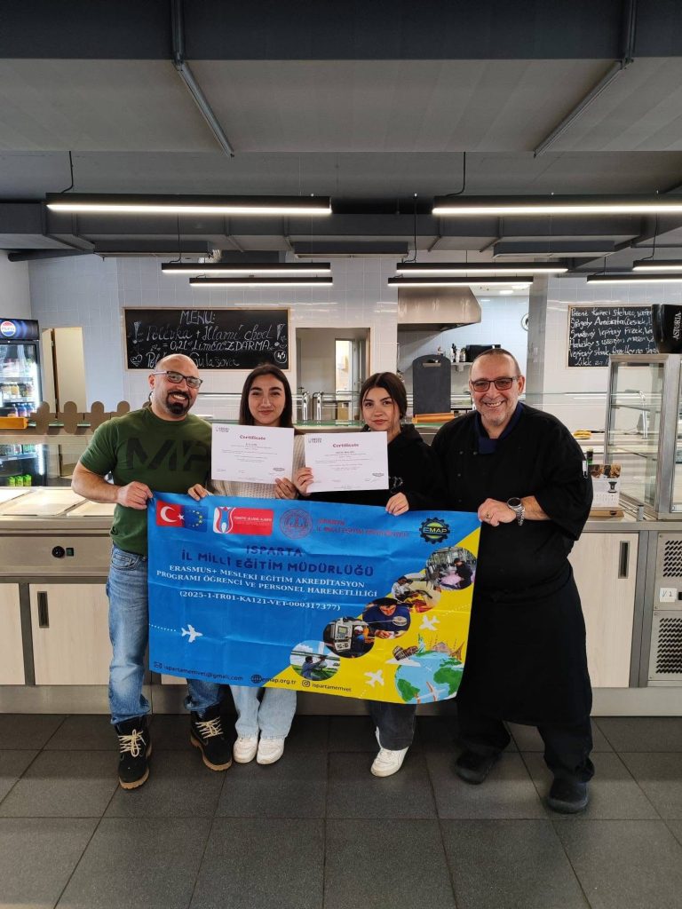 Gül MTAL öğrencilerimizin Erasmus+ kapsamında Çekya’da bulunan Fresh Taste Şirketi bünyesinde gerçekleştirilen 90 günlük uzun dönem staj programı, Isparta İl Millî Eğitim Müdürlüğümüzün koordinesinde başarıyla tamamlanmıştır. Mesleki uygulamalarını başarıyla bitiren öğrenci grubumuz Isparta’ya dönmüş olup, kendilerine kariyer yolculuklarında başarılar dileriz.