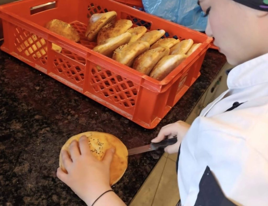 Erasmus+ programı kapsamında Almanya’nın Rosenheim şehrinde staj yapan öğrencilerimiz, Türk mutfağının Avrupa’daki temsilcisi olan gobit ekmeğinde döner lezzetini başarıyla hazırladı. Özenle seçilen döner etini taze sebzeler ve özel soslarla zenginleştiren öğrencilerimiz, geleneksel tarifleri modern sunum teknikleriyle birleştirerek mesleki becerilerini uluslararası boyuta taşıdı. Avrupa ve Türk mutfağının uyumunu yansıtan bu lezzet şöleni, mesleki eğitim yolculuğumuzun yeni kültürler ve tatlarla güçlenerek sürdüğünü bir kez daha kanıtladı.