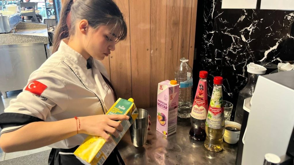Erasmus+ kapsamında Almanya’da staj yapan geleceğin şefleri,ferahlatıcı aroması ve estetik sunumuyla dikkat çeken Bora Bora Kokteyli hazırlamayı öğrendi. Öğrencilerimiz, tropikal meyve aromalarını modern sunum teknikleriyle harmanlayarak uluslararası mutfak standartlarında bir deneyim sundular. İçecek hazırlama ve sunum konusundaki yetkinliklerini her geçen gün artıran gençlerimiz, dünya mutfağına profesyonel adımlarla hazırlanıyor. 👨🍳👩🍳